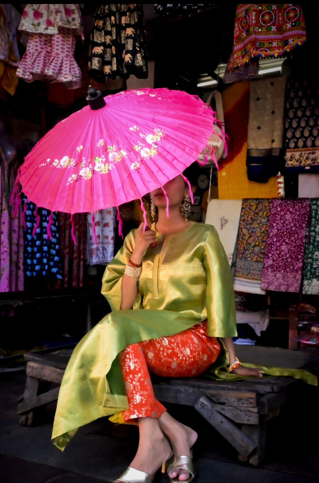 A symphony of tradition and modern allure — this three-piece set from Tana Bana features a delicately crafted brocade bralet, layered with a Mughal Bell Sleeves Kurta and structured brocade pants. Each thread tells a story of heritage woven in Jaipur, reimagined for today’s woman who celebrates her roots with confidence and grace.